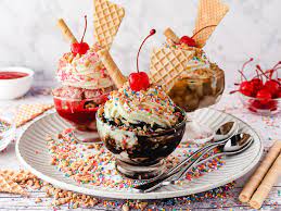Ice cream is a frozen dessert typically made from milk or cream that has been flavoured with a sweetener, either sugar or an alternative,